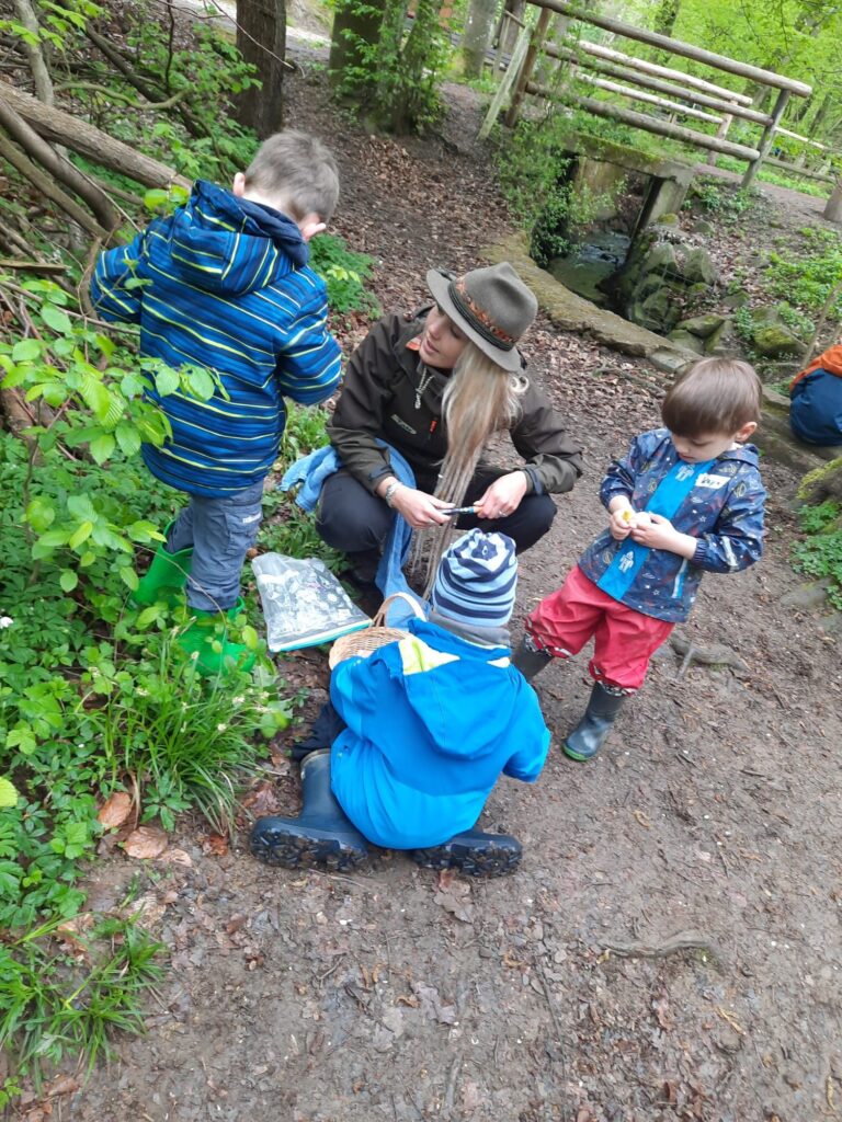 Am letzten Samstag im April ging es „ab ins Abenteuer“ zusammen mit dem Team von der Erlebnisschule Wald und Wild der Kreisjägerschaft Ahrweiler. Die Erlebnisschule ist das Herzensprojekt der Ahrweiler Jäger und kommt schon seit vielen Jahren als sogenannte rollende Waldschule zu den Kindern in unserem Kreis, um ihnen die wilde Tierwelt näher zu bringen. Für den Projekteinsatz hatten die drei Jägerinnen spannende Missionen für die Kinder und Jugendlichen mitgebracht.Nach dem Kennenlernen durften erstmal alle beim „Fuchs und Mäuse“-Spiel nach Herzenslust toben und rennen. Anschließend gab es mit Tjede Kaukewitsch und Monika Fischer im anliegenden Bach faszinierende Wasserlebewesen zu entdecken. Die große Vielfalt an verschiedensten Arten von Bachflohkrebsen, Eintagsfliegenlarven und Strudelwürmern erstaunte nicht zuletzt auch die Erwachsenen, die ebenso eifrig beim Tümpeln dabei waren. Wie viele verschiedene Lebensräume so ein Bach tatsächlich hat und daran angepasst die darauf spezialisierten Larven, Krebse, Würmer und Schnecken, hat zu großen Erstaunen geführt. Alle durften außerdem einen eigenen Bachstein mit Farben selbst gestalten und hatten so eine kleine Erinnerung an den schönen Wassertag mit den Freundinnen und Freunden. Besonders aufregend wurde es nach der gemeinsamen Frühstückspause, denn dann ging es zusammen mit Brigit Gross auf die Pirsch. Ganz versteckt warteten unter anderem Hase, Fuchs und Dachs im kleinen Wäldchen am Bach und die Jägerin wusste Spannendes zur Lebensweise unserer heimischen Wildtiere zu erzählen. Abschließend durften dann noch die Forellen gefüttert werden, die in einer kleinen Hobbyanlage am Bach zu finden sind. Auch das ein positive Verbindung mit dem Element Wasser, denn so eine geräucherte Forelle direkt aus dem heimischen Gewässer ist auch ganz schön lecker, wussten die Kinder zu berichten.